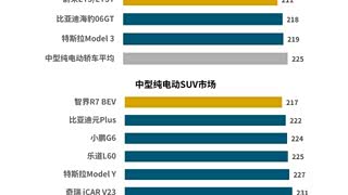 根据J.D. Power 2026中国新能源汽车新车质量研究(NEV-IQS),中型纯电动轿车市场中,蔚来ET5/ET5T以每百辆车211个问题数(PP100)位列第一,优于平均线225;比亚迪海豹06GT(218)和特斯拉Model 3(219)也表现不俗。中型纯电动SUV市场,智界R7 BEV以217 PP100领跑,比亚迪元Plus(222)、小鹏G6(224)等均优于平均232。整体看,头部车型质量优势明显,但各车型间差距不大,市场竞争激烈。需注意PP100越低代表质量越好,上述车型均处于细分市场领先水平。