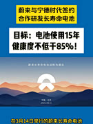 电池使用15年健康度不低于85% 蔚来与宁德时代合作研发长寿命电池