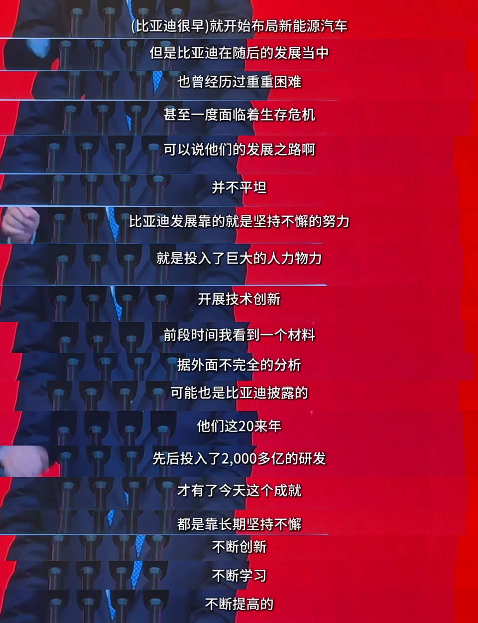 发展中的竞争很正常,良性竞合才能共赢。中国企业的优势,靠的是深化改革、创新驱动,更靠中国人民和企业家的勤奋。就像比亚迪,二十多年坚持投入两千多亿搞研发,才闯出这条路。论坛上大家也认同:企业要坚持长期主义,用技术创新练好内功,这样才能穿越周期,为全球产业链添一份确定性。