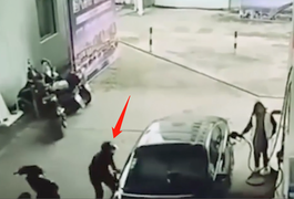 粗心司机加油枪没拔启动就走,随后车主们的行为,及时挽回损失