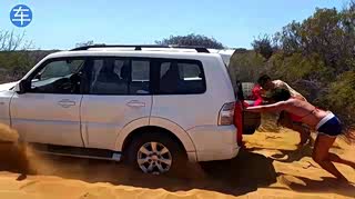 男子把车开入沙地,结果乘客乐不起来,最后这辆皮卡真是尴尬