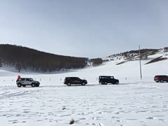 在乌兰布统的雪地上,车队整装待发准备玩雪!