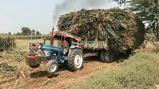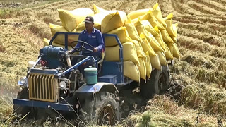 用拖拉机运输粮食,这也太重了吧,连起步都费劲