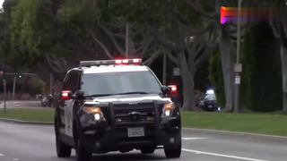 比弗利山庄出现特殊车辆,众多群众在树后观看