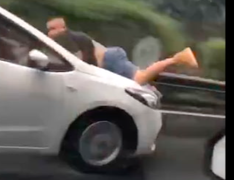 有什么深仇大恨,发动机舱盖人趴着还开车上高速?