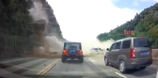 行车偶遇落石,雨季行车需特别注意驾驶安全