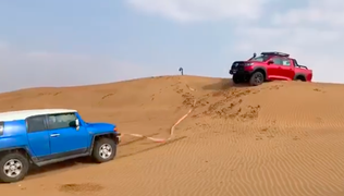 丰田FJ沙漠拖长城炮,炮的拖车钩都被拽掉了?