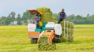 水稻收割后,看看打包草垛的机器是如何打包谷草的