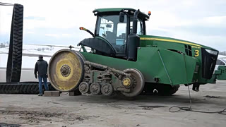实拍拖拉机换履带,千斤顶都不用,配合的真默契