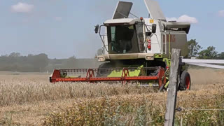 收割机工作视频,大型收割机农作物成熟时进行作业!
