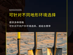 运良4x4铁锹系列:越野救援、户外露营的必备工具 提供多种规格,可针对不同地形环境选择,或组合携带 尖头铁锹:长110cm,锹宽215mm。擅长挖掘,适用性广 平头铁锹:长148cm,锹宽200mm。软质地形作业效率更高 短款铁锹:长85cm,锹宽175mm。轻巧便携,易于收纳 经久耐用:锹头采用锰钢冲压+喷塑镜面抛光,结实可靠,坚固耐用 兼顾重量:锹杆采用玻璃纤维管,承重强、重量轻。尖头款1.69kg、平头款2.13kg、短款1.03kg 趁手易用:尖头款/短款采用TPU橡胶三角手柄,适合抵推操作;平头款采用PVC直柄,防滑舒适