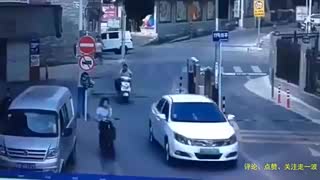 行车记录仪:小伙打算和汽车一起过去,结果杆子这时候落了下来