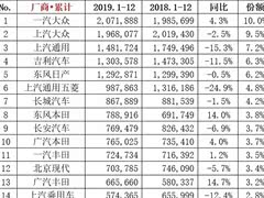 2019年汽车销量十五强车企出炉,一汽大众夺冠,吉利第四日产第五