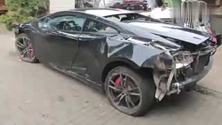 一辆受损的黑色兰博基尼跑车,看老师傅如何将它修复一新