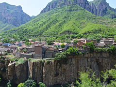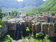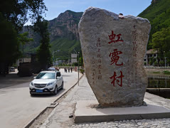 #2018最美自驾游#在太行山脉的深处,河南与山西两省交界的地方,有一个千年古村落,它四面环山,丛林密布,一条清澈的虹霓河从村前流过,天长日久把村落前面冲出了一条几十米深的大峡谷,看起来这个不大的古村落,矗立在陡峭的悬崖上面。这个古村落叫虹霓村,属于山西省平顺县虹梯关乡。被人们称为“悬崖上的古村落”。2018年5月29日,起早开起我的长安CS35,向着虹霓村驶去。我们从京港澳高速直达河南安阳,转南林高速、平长高速往西而去。整个行程340公里,虽然全程高速。但是越向西走,路越窄,隧道一个连着一个,限速到了每小时70公里。再加上服务区调整,整个单向行程用时4个多小时。中午到达目的地,我们简单的吃过午饭(刀削面不错),冒着满头大汗就来到古村落,观赏它的美景,品味它的意境。虽然河水不大,但是悬崖处的瀑布飞泻而下,在阳光的照射下,如虹如霓。古村落规模不大,只有30多户人家,大多住着留守老人和孩子。但是有很多人家还保存着清朝时期的建筑,为古村落增添了神秘的韵味。