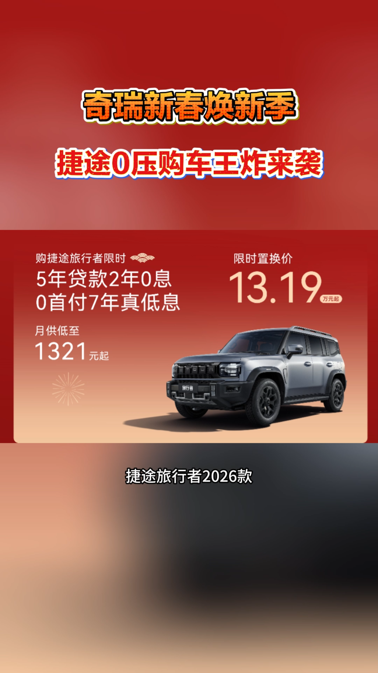 奇瑞新春焕新季,捷途0压购车王炸来袭 #奇瑞新春焕新季 #捷途汽车