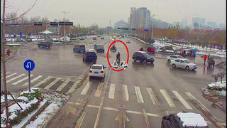 雨雪天气,道路结冰,一面包车失控跑出“舞步”酿车祸