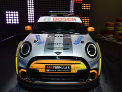 日前,MINI官方宣布,MINI Electric Pacesetter将在4月19日亮相上海车展。该车将John Cooper Works与MINI纯电进行结合,用作2021年电动方程式锦标赛的安全引导车。从图中可以看出,PACESETTER外观设计从MINI JCW GP车型中获取灵感并采用特殊的赛化涂装,全新设计的18英寸拼色轮毂搭配米其林Pilot Sport轮胎(245/40),配合空气动力学套件及高位警示灯,无不彰显出新车作为赛事安全车的高规格性能表现。虽然本次新车并未开放内饰的拍摄,但根据此前海外公布的官图可以获悉,新车已经在车内安装了防滚架,并在前排换装了六点式安全带的座椅,中控显示屏被更换成了碳纤维板,并在中控台加装了换挡杆、手刹、信号灯控制装置等。动力传动系统沿用MINI Electric,因此MINI Electric Pacesetter的动力参数为181马力,但是经过轻量化升级显着提高了性能,将0-100km/h加速时间减少了0.6秒,缩短至6.7秒。