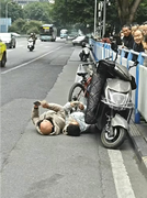 自行车和电动车撞后两人就都躺下了,谁先起谁输!