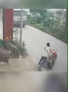 男子将同行朋友连人带车推向对面过来的大货车!