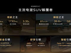 今晚银河M7首秀,有几个信息点值得聊聊。 1. 电池。银河M7搭载神盾金砖电池,容量29.8kWh,续航225公里。这个数据目前是同级第一的,年内被同行追赶也是肯定的,但是神盾金砖电池有几个优势:快充,30%充到80%仅需15分钟;安全,通过了雷击、切割、挤压、连续碰撞、八针同刺等性能极限挑战;耐用,循环寿命超过4500次,折算下来就是百万公里的行驶里程。这样的电池容量和安全性能,完全可以满足一辆插混车当做纯电车来用。 2. 操控。银河M7同样来自GEA EVO,全新开发的平台和车身强化了操控新能。这次银河M7重点强调了在北欧完成的冬测和性能标定,欧洲团队深度参与,以81km/h通过麋鹿测试。因此,银河M7会在操控方面确立它的差异化和竞争点。 3. 定位。银河M7是一款非常主流的家用产品,经济性是一定要讲的,175kW的电机通过一些高效率和轻量化的技术,依然可以实现3字头的平均油耗,综合续航1730公里。至于配置方面,Flyme Auto2,Flyme Auto,千里浩瀚H3,悉数登场,这就是吉利银河一直以来的优势了。 吉利银河M7这款车几乎没有短板,而且长板也够长,接下来就等价格了。吉利的定价一向很有诚意。