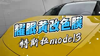 黄的特别正!特斯拉model3装贴HKPPF耀眼黄色车漆改色膜