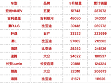 2025年9月汽车销量出炉 吉利狂抢比亚迪市场