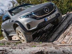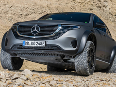 近日,奔驰发布了EQC 4x4概念车,新车以看似有一些违和的方式向人们展示了奔驰电动车阵营越野方面的信心和决心。 这款高端的电动SUV原型车由梅赛德斯·奔驰开发工程师约根·埃伯勒(JürgenEberle)领导的小团队创建。这是继G级和E级全地形车型之后,梅赛德斯生产的第三款4x4车型。 在外观方面,新车基本以已经正式上市的EQC车型为基础打造,但换装了醒目的285/50/R20固铂AT越野轮胎,同时新车的离地间隙由标准版本的293毫米,增加了153毫米,达到446毫米,比奔驰G级标准版本还要高出不少,接近角也提升至43度,离去角增加至33度,还增加了大面积突出的车侧包围以及车门下方醒目的4x4标志。 在实际越野表现方面,看起来与越野格格不入的纯电动车型其实恰好非常适合脱困,奔驰为概念车搭载了前后双电机组成的电控四驱系统综合,最大功率可达414马力,最大扭矩更是达到惊人的762牛米,双电机不需要任何擦锁止装置就可天生独立运作的特性,加上强大的扭矩,以及奔驰打造的7种驾驶模式选择,自然可以从容应对各种打滑场景。