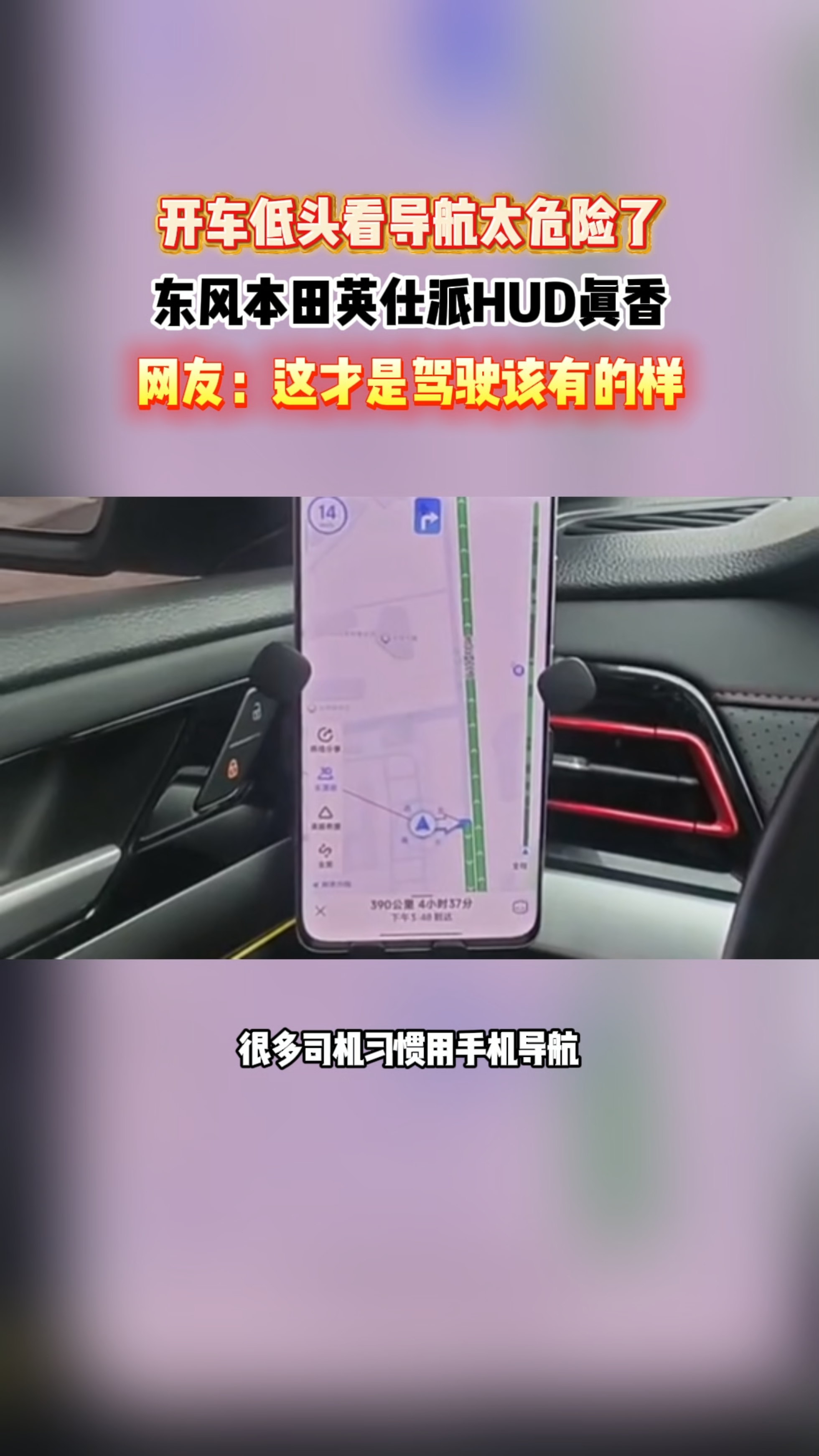 导航路况不低头,东风本田英仕派HUD抬头显示,守护行车安全。