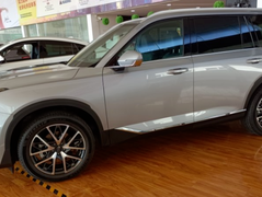 2022款吉利博越X到店车型实拍。这款车的前脸采用了“能量风暴”的设计语言,前脸看起来时尚精致。车头两侧的灯组比较饱满,前脸的进气格栅尺寸相对偏大,中网还采用了黑色涂装。前脸两侧还采用了凹陷式设计的进气口,两侧搭配了立体的撞色饰板。车身非常的高大,车窗边缘的黑色饰条质感高级,溜背式设计的车顶运动感十足,车身的腰线也很饱满。轮毂采用了黑化处理,看起来时尚精致。车尾比较饱满,尾灯很立体,中间用细长的银色饰条连接。车尾比较饱满,尾灯很立体。车内的装饰很大气,搭载了三幅式设计的方向盘,嵌入式液晶显示屏尺寸小巧。
