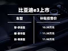 比e2更居家 | 比亚迪e3上市,补贴后售价10.38-11.98万元