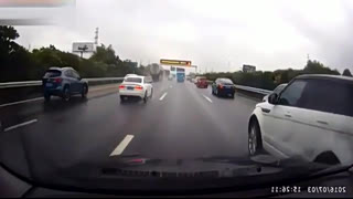 无疑又是女司机吧 高速快车道上停车,可把路虎坑惨了