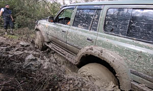 路虎挑战失败 深陷1米深的泥沟 无奈使用绞盘救援