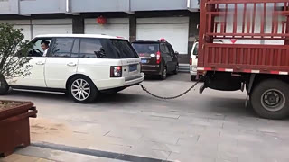 路虎挑战大货车拔河,憋足最大马力,结局我看愣了