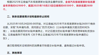 重磅消息,云南省商务厅近日发布公告,自2025年11月1日起暂停今年汽车报废更新和置换更新的补贴申请。这意味着在剩下的几个月里,想通过官方渠道享受车辆更新换代补贴的消费者将暂时无法提交申请材料。 这一紧急刹车并非孤例。江苏、贵州、厦门、宁波等地也已发布类似公告,暂停实施汽车置换更新补贴或关闭申请通道。表面看,这是各地专项资金使用接近尾声的常规操作,背后却折射出汽车消费刺激政策正在转向。 从政策驱动向市场驱动转型,是汽车产业成熟的必由之路。新能源汽车渗透率目前已达57.8%并连续七个月增长,市场已具备一定内生动力。政策退坡也倒逼车企从价格战转向价值战。也有些企业已推出自有补贴方案,将政策依赖转化为用户粘性,这才是健康业态。 补贴暂停短期内或影响购车决策,但长期看,消费者将从“为补贴买车”回归“为需求买车”,促使行业更聚焦技术革新与用户体验。政策拐点已至,市场回归产品本质的时候到了。