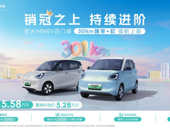 置换补贴价5.28万元,宏光MINIEV四门版301km续航车型上市 宏光MINIEV四门版301km臻享+款上市啦!置换补贴价5.28万元,新车将于11月12日20:00在直播间惊喜限量首发。对于用户而言,长续航可以带来更自由的出行。 其实,宏光MINIEV四门版早在今年2月就已经上市,凭借四门设计以及优化升级的空间,开启了代步车2.0时代。今年10月,宏光MINIEV销量超6万辆,11月第一周热销25845台,市场表现非常不错。而随着人民对于长续航需求的高涨,宏光MINIEV四门版长续航车型也正式到来。 25.1kWh的电池,宏光MINIEV四门版长续航车型的最长续航为301km,再配合35分钟电量从30%充电至80%的直流快充功能,对于每天通勤里程不超30km的朋友来说,每周充一次电真的是游刃有余。哪怕是跨城出行,也可以做到来说走就走的无忧出行。 除了301km的长续航之外,宏光MINIEV四门版的四门四座设计为大家的代步出行带来了更为舒适和便利的出行体验。标准容积为123L的后备箱,在放到后排座椅后可以得到745L最大拓展容积,全车19处储物空间设计,更加适合多人出行需求的空间体验。 更长续航,更大空间,更舒适出行体验,再配合5.28万元价格,代步车2.0时代的优选,肯定少不了宏光MINIEV四门版长续航车型。