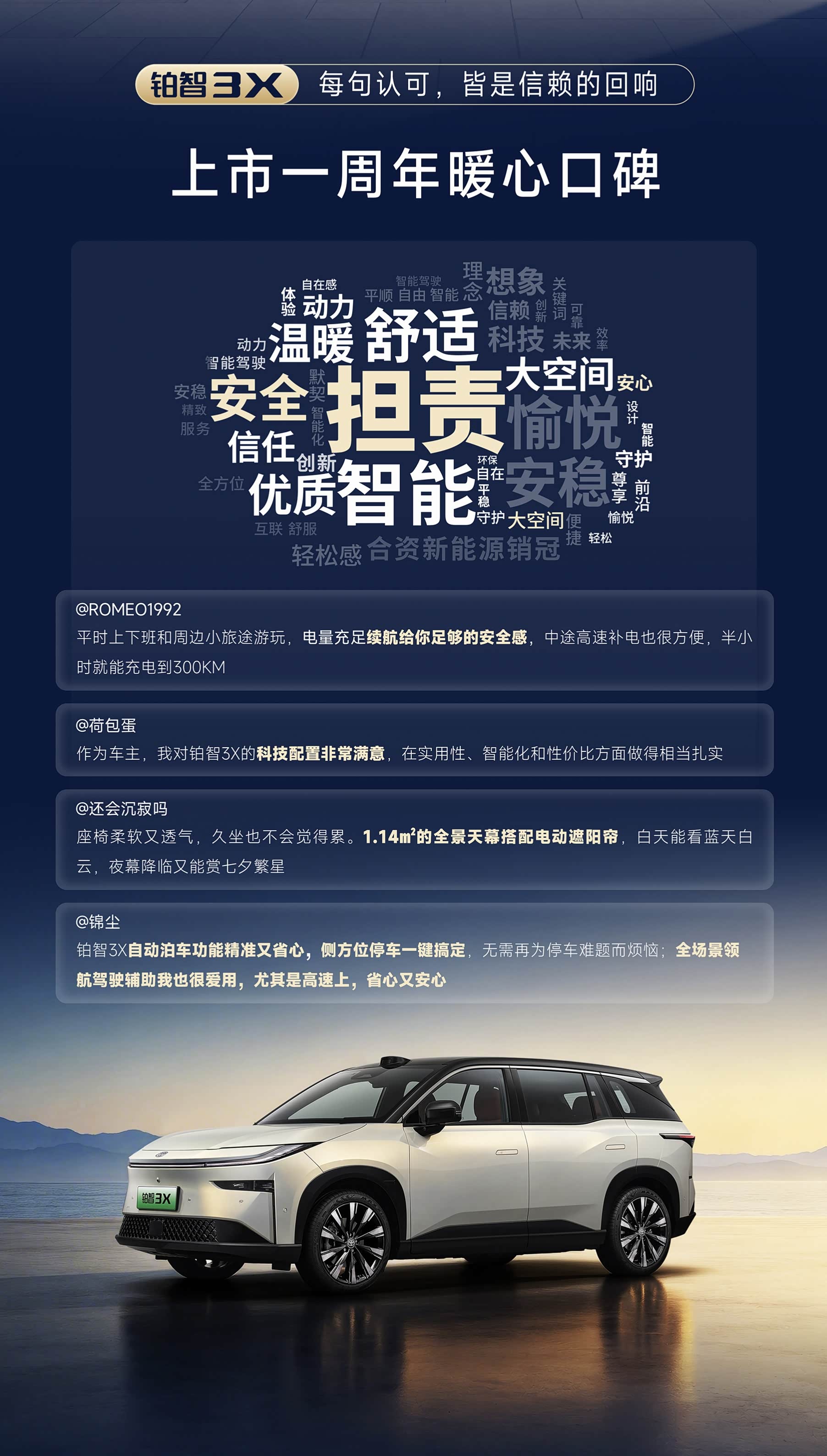 铂智3X上市一周年,官方搞了个OTA发布会。我本来以为就是常规的”新增功能若干条”,点开一看——还真不太一样的嘛。 先说一个细节。 现场演示鬼探头场景,对向突然窜出来一辆车,系统刹停,干净利落。现场有人第一反应是”这是剪辑好的吧”。但这次智驾升级换的是Momenta R6强化学习大模型——不是规则库扩容,是真的用强化学习”喂”出来的判断力,基于30亿公里数据提炼,从每一次成功避险里汲取经验。 说人话就是:以前的辅助驾驶是背答案的,这次是真的在考场上想题目。 有点厉害,我真不知道合资品牌的智驾已经迭代到这个程度了。这里你可以喷人家是采购的。那问题是你采购来成本ok效果可以,干嘛不采购呢?这才是供应链管理呀。 然后是座舱。 六大AI智能体里,我觉得最有意思的不是最炫的那个,是咖啡点单智能体——一句话车内下单。这种功能单拎出来说,画面感很强:开着车,顺嘴说一句”来杯拿铁少冰”,到了楼下直接取。
