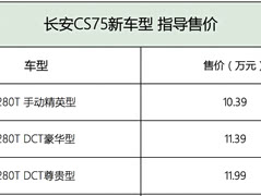配置调整升级,长安CS75新增车型上市,售10.39万起