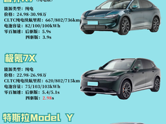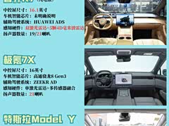 预算30万左右想买纯电SUV,你是不是第一时间想到全球销量王特斯拉Model Y,而如今国产新势力也已经杀疯了,智界R7、极氪7X也是同级别不错的选择,那就让我们通过这篇图文看看谁更懂你的需求? 具体参数详见上图。 🌟总结🌟 【智界R7】:家庭用户的“安心之选” 它最拿得出手的就是“家用+智驾”双buff。华为ADS配着双激光雷达,新手开着不慌;老司机跑高速,自适应巡航、车道保持也省劲儿。超大后备箱是加分项。要是你天天要接送孩子,又看重开车的省心和舒服,选它准没错。 【极氪7X】:预算党和性能控的“快乐车” 说它是“性价比卷王”真不夸张。四驱版2.98秒就能破百,踩下加速踏板的推背感特别带劲,喜欢开快车的人绝对爱。预算卡得紧,但又不想妥协性能和补能效率的,闭着眼冲它。 【特斯拉Model Y】:追求稳定的“不出错选项” 用一个“稳”字形容太贴切了。全球卖了这么多年,品牌口碑摆在那儿。不过它的极简内饰有人觉得清爽,有人觉得太“素”。要是你看重长期使用的稳定性,对品牌有执念,不介意这些小特点,选它基本不会踩雷。 关注我,为你对比更多好车!
