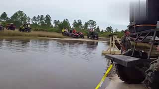 悍马玩涉水尴尬被淹,拉上了大灯竟然还亮着