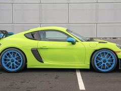 保时捷Sonderwunsch再出神作: 贝尔维尤中心挂出一辆“荧光笔”GT4 RS,桦木绿车身配湖蓝轮毂、后视镜、尾翼端板与NACA进气口,车尾字标也换蓝,远看像《玩具总动员》遥控车。座舱设计更浮夸,蓝色皮质包覆侧垫、头枕与仪表台,绿滚边勾勒黑皮织物拼接座椅,蓝色缝线贯穿中控与门板。整车额外选装费超5万美元!