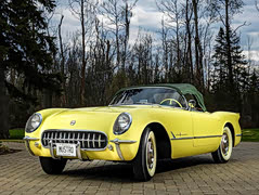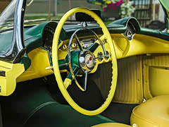 这款1955年金的克尔维特,265立方英寸的V-8发动机三速手动变速箱是标准配置,加热器到挡风玻璃刮水器再到停车制动警报器,附加组件是旧的235ci直六缸发动机,黑车轮胎与白车轮,1955年生产运行中唯一使用的变速箱,怎么样经典吧?