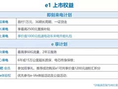 4月12日,比亚迪e系列纯电动汽车e1正式上市,新车共计推出进、悦、智、耀四款车型,补贴后售价5.99万元-7.99万元之间,综合续航里程可以达到305公里。官方称该价格为“来电先享价”,仅在6月25日前购车上牌有效。此外,比亚迪还推出限时限量享受的“即刻来电计划”和“e享计划”。