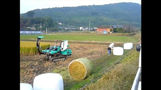 水稻丰收,前面收割后面打捆,农村妹子这开车技术厉害了,高手啊