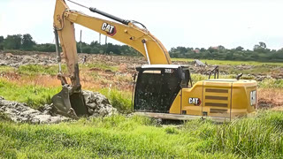 实拍挖掘机在泥浆中作业,只要技术够牛没有它做不到的