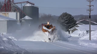 铁轨专用除雪机,60码速度顶着雪前行,太壮观了