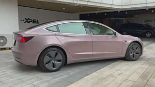 特斯拉model3贴冰莓粉膜,帅不帅