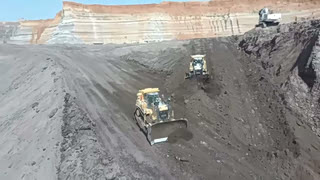 煤矿上的推土机实拍,两台推土机共同作业,效率高!