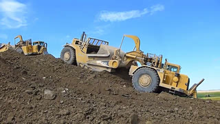 卡特657铲运机工作视频,长见识了,不用挖掘机!
