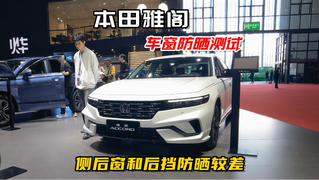 广汽本田雅阁车窗防晒测试,侧后窗和后档防晒稍差!